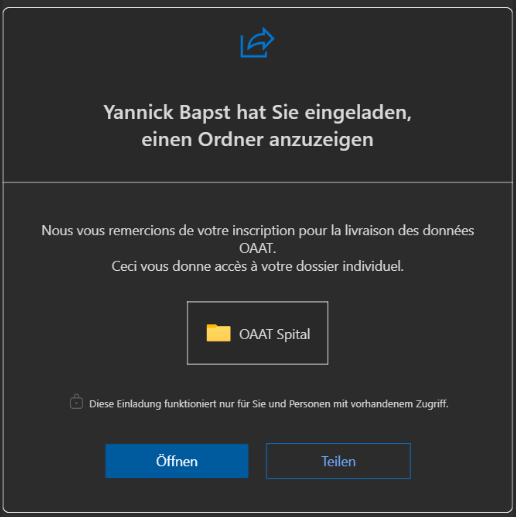 Une fois le formulaire web dûment rempli, vous recevrez rapidement par e-mail une invitation à vous rendre dans votre boîte aux lettres personnelle pour la livraison des données 2025 :